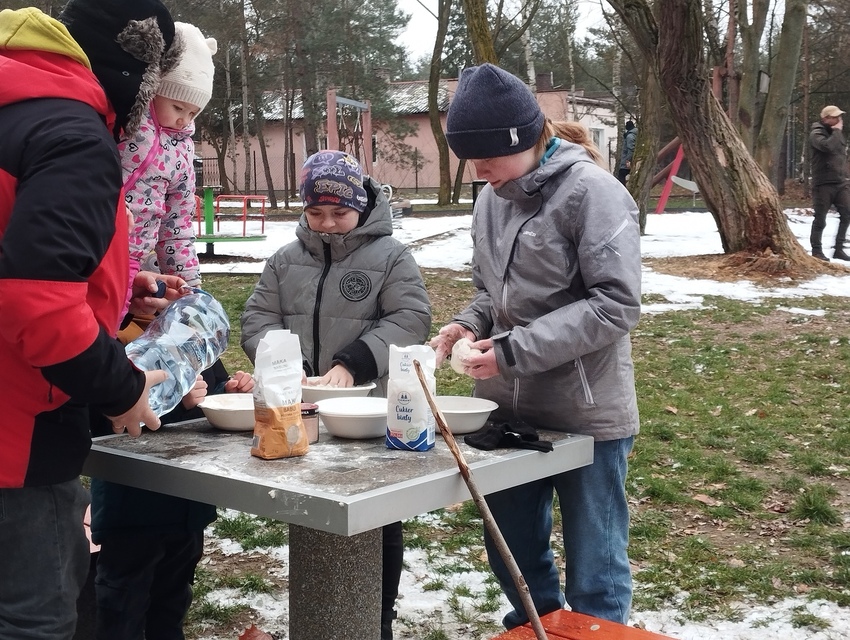 Zaczęliśmy od poszukiwania zagubionych, niesfornych grzybiarzy, następnie przygotowaliśmy dla nich schronienie, upiekliśmy im podpłomyki.